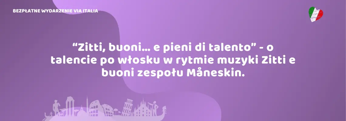 “Zitti, buoni… e pieni di talento” - o talencie po włosku w rytmie muzyki Zitti e buoni zespołu Måneskin.“Zitti, buoni… e pieni di talento” – o talencie po włosku w rytmie muzyki Zitti e buoni zespołu Måneskin. Na najbliższym spotkaniu Klubu Via Italia…