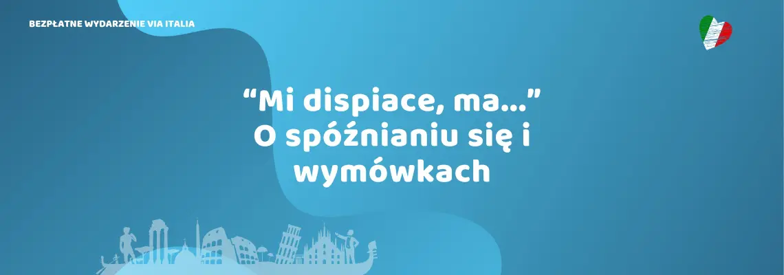 “Mi dispiace, ma...” O spóźnianiu się i wymówkachCzasem się spóźniamy. Czasem naprawdę mamy powód… a czasem tylko dobrą wymówkę.Na tym spotkaniu z Beatą poćwiczymy, jak po włosku mówić o spóźnieniach, usprawiedliwieniach i nieprzewidzianych…